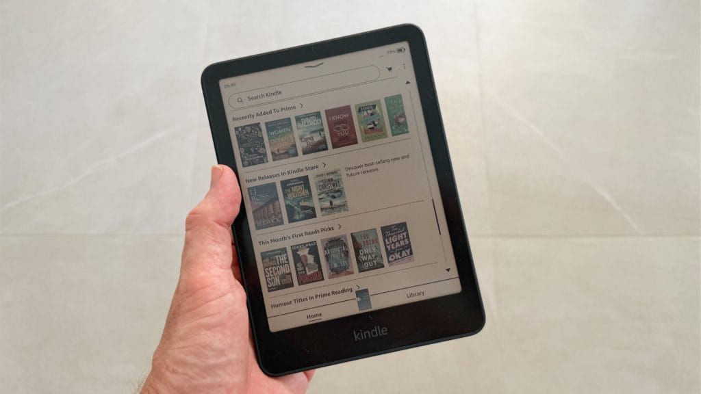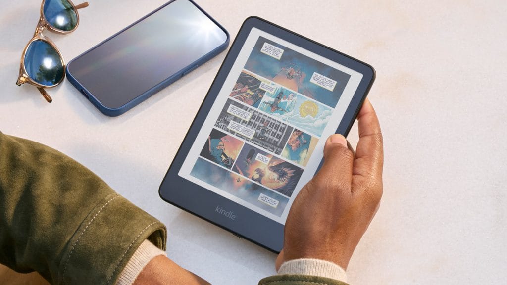 The 7-inch display sits comfortably in the hand and offers enough reading real estate for most content without becoming unwieldy. For comics, you’ll likely still find yourself using panel view to zoom into individual frames on busier pages, but for graphic novels and illustrated books there’s plenty of space to enjoy the artwork. Unlike the PocketBook’s recessed screen which I found to be a bit of a dust magnet, Amazon’s flush front design feels more premium and is easier to keep clean. It’s a small detail but one I appreciate when you’re handling something every day.