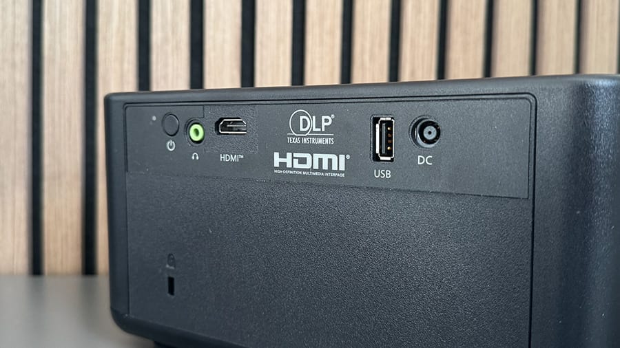 Inputs on the back of the GamePix 900 are limited, but they’re laid out with plenty of space around each. You’ll find a single HDMI input, a headphone jack, a USB-A port and a power connection, along with the power button and a small LED indicator light. There’s also a locking port here if you’re worried about someone running away with your new gaming projector. Hidden inside the GamePix 900 is a 5W speaker with a sound chamber designed to boost this output.
